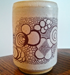 On Friday evening Steve had us all drawing our favorite images and then he and his associate, Rebecca Graves, turned our art into decals to apply to cups and fire in one of his many kilns. By Sunday morning the cups were ready for us to take home as mementos of an amazing retreat experience. Thanks, Steve and Rebecca and Heidi.